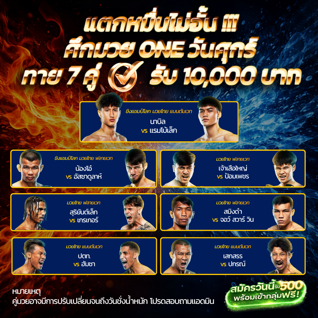 ทายมวย ONE เข้าหมด 7 คู่ เอาไปเลย 10,000
